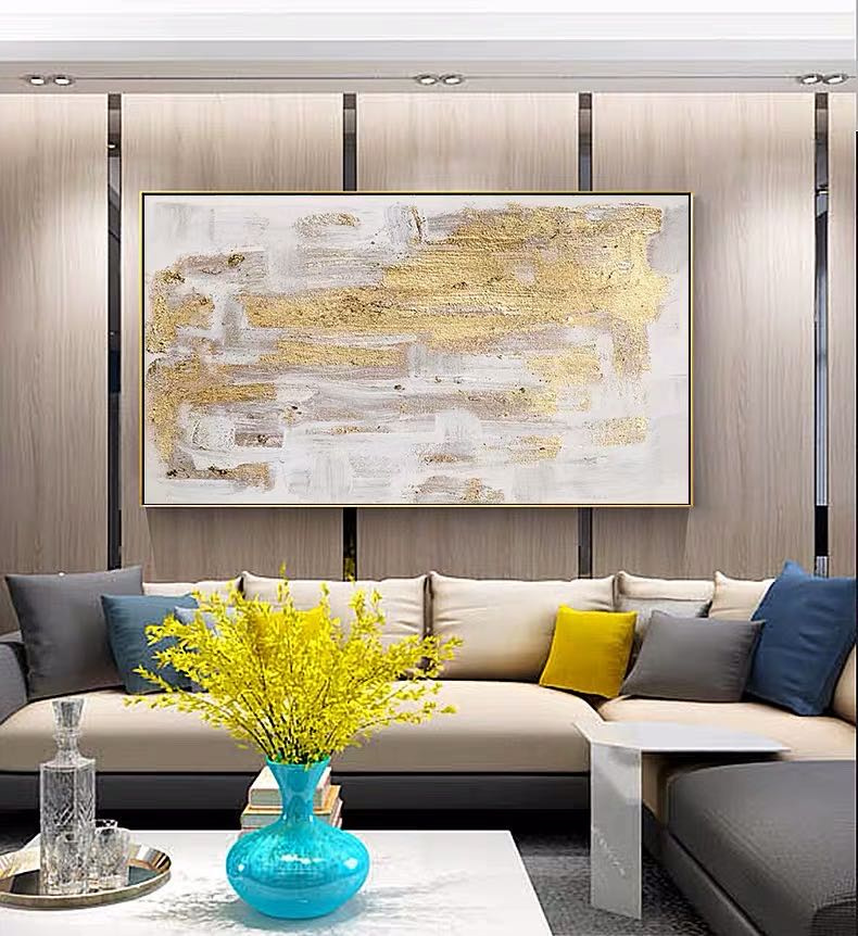 Home > Handmade Gold Foil Abstract Oil Painting Top Selling Wall Art Modern Black and White Color Picture Canvas Home Decor For Living Room No Frame