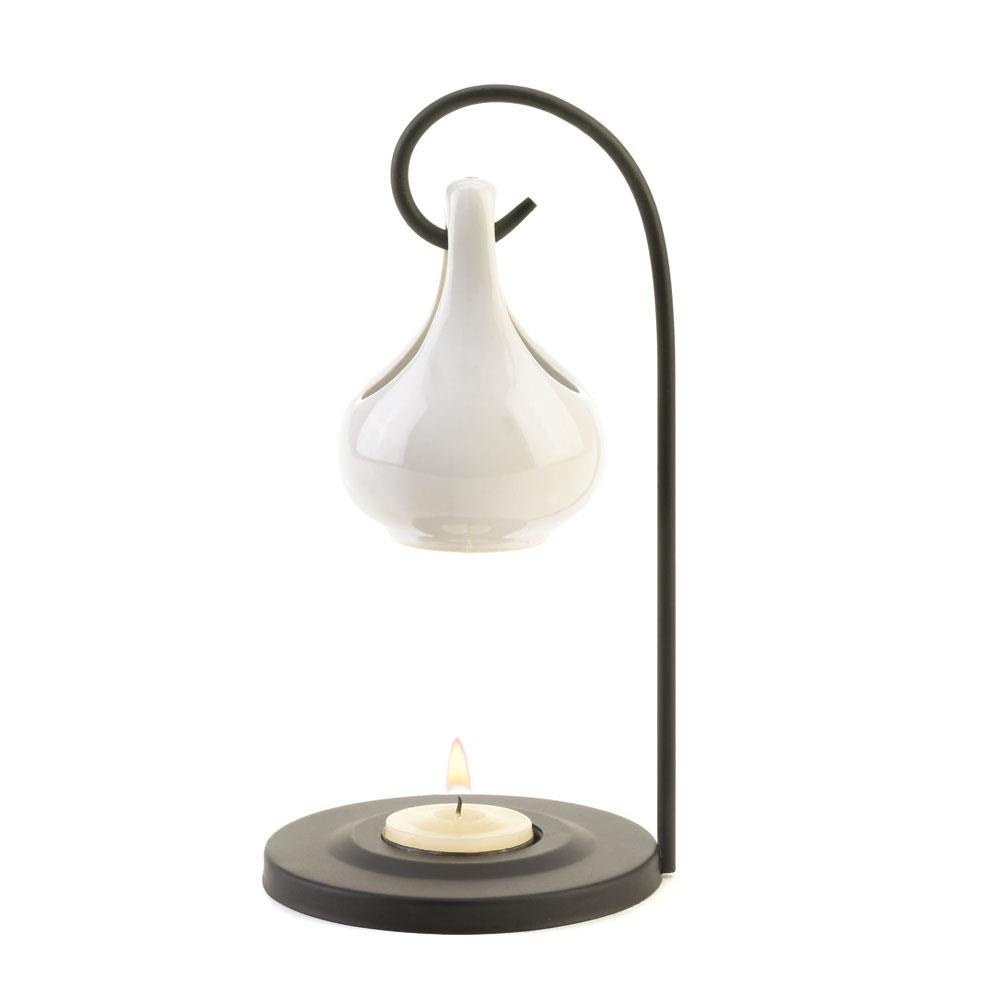 • The oil warmer is made from porcelain with a metal stand that is easy to clean and provides gorgeous sculptural details.